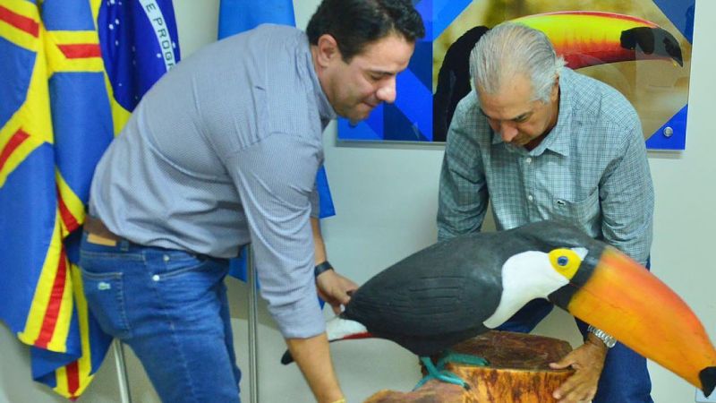 “Antes da foto com o amigo André Nezzi, prefeito de Caarapó, a gente precisou dar uma ajeitada no tucano, ave símbolo do nosso partido. Ficou legal!“.