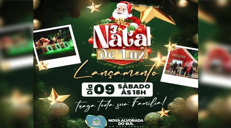 A tão esperada chegada do Papai Noel marca a abertura oficial da terceira edição do Natal de Luz em Nova Alvorada do Sul. O evento acontecerá no Parque Nelson Tereré, no sábado (9), a partir das 18 horas com show dos pratas da casa.