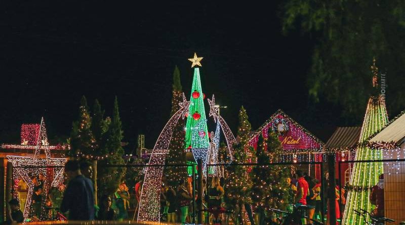 A iluminação natalina permanecerá até janeiro Parque Nelson Tereré.