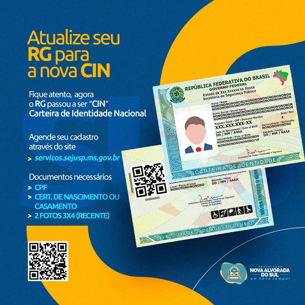 A partir deste ano, o RG está sendo substituído pela CIN, a Carteira de Identidade Nacional.