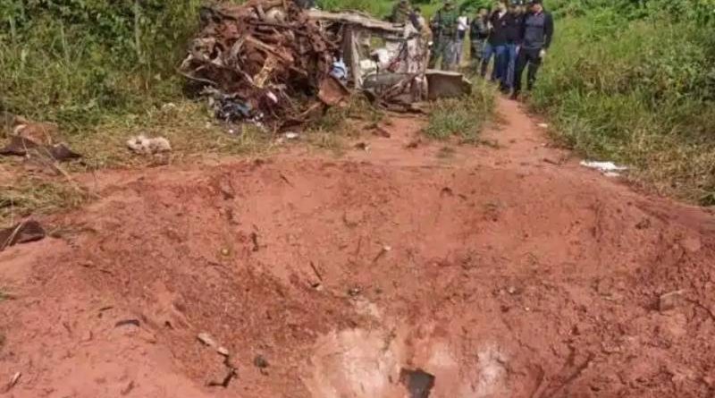 Nas imagens capturadas, é visível a dispersão de diversos tabletes de drogas pelo solo. A explosão gerou um impacto tão forte que criou um buraco no solo, e da caminhonete restou apenas a carroceria.