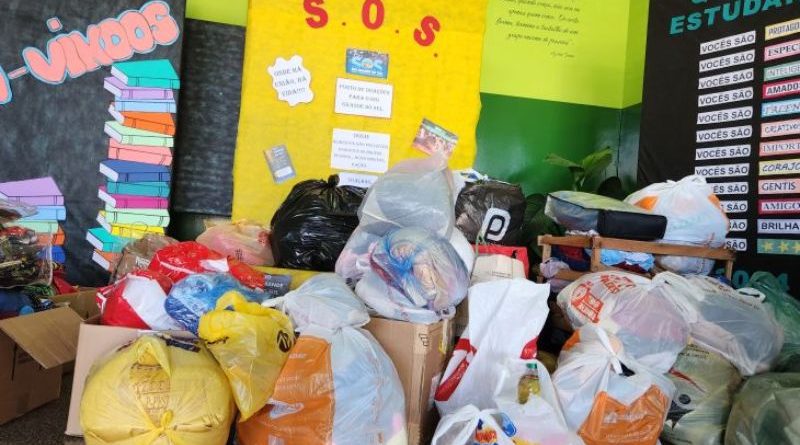 Estudantes se engajam em campanha e doações ao RS chegam todos os dias nas escolas