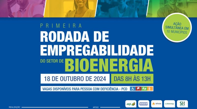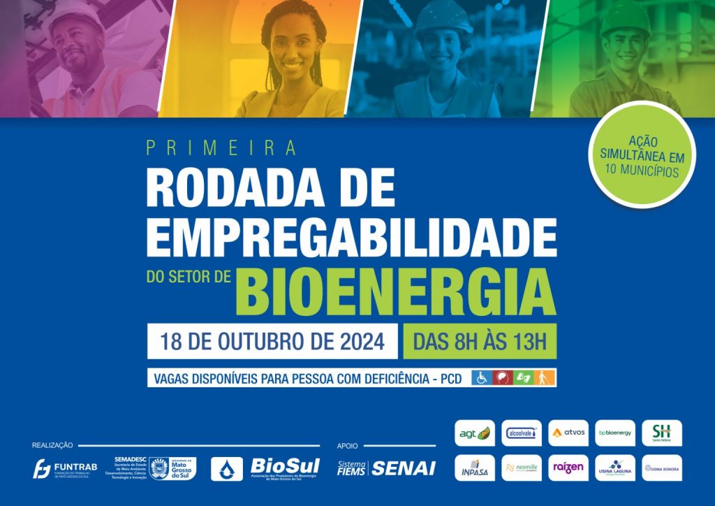 Nesta sexta acontece a primeira Rodada de Empregabilidade do setor de Bioenergia em Nova Alvorada do Sul. Participe, dia 18 de outubro, das 8h às 13h na Casa do Trabalhador (Ciat).