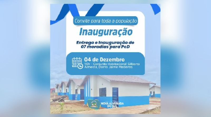 A Prefeitura Municipal convida toda a população para a entrega e inauguração das casas para Pessoas com Deficiência (PcD) no Conjunto Habitacional Gilberto Almeida.