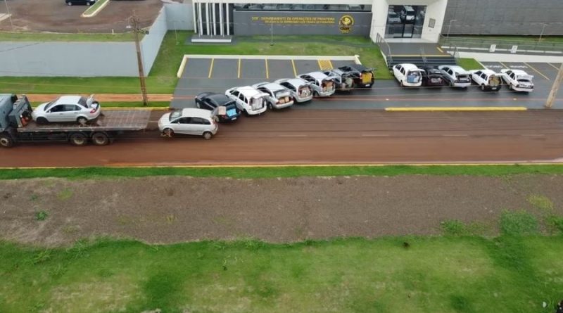 Em uma operação realizada neste sábado (14), em Nova Alvorada do Sul, policiais militares do Departamento de Operações de Fronteira (DOF) interceptaram um comboio com 14 veículos carregados com mercadorias ilegais, avaliadas em R$ 1,1 milhão. Na ação, 14 homens foram detidos.