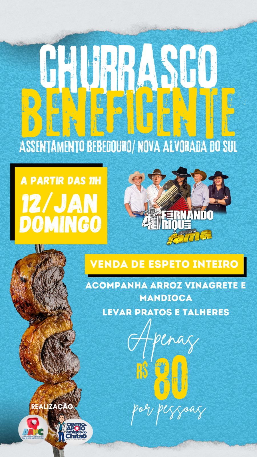 Social Churrasco Beneficente – Assentamento Bebedouro, em Nova Alvorada do Sul: 12/01/2025 26 de dezembro de 202426 de dezembro de 2024 Elite Midia 0 comentários