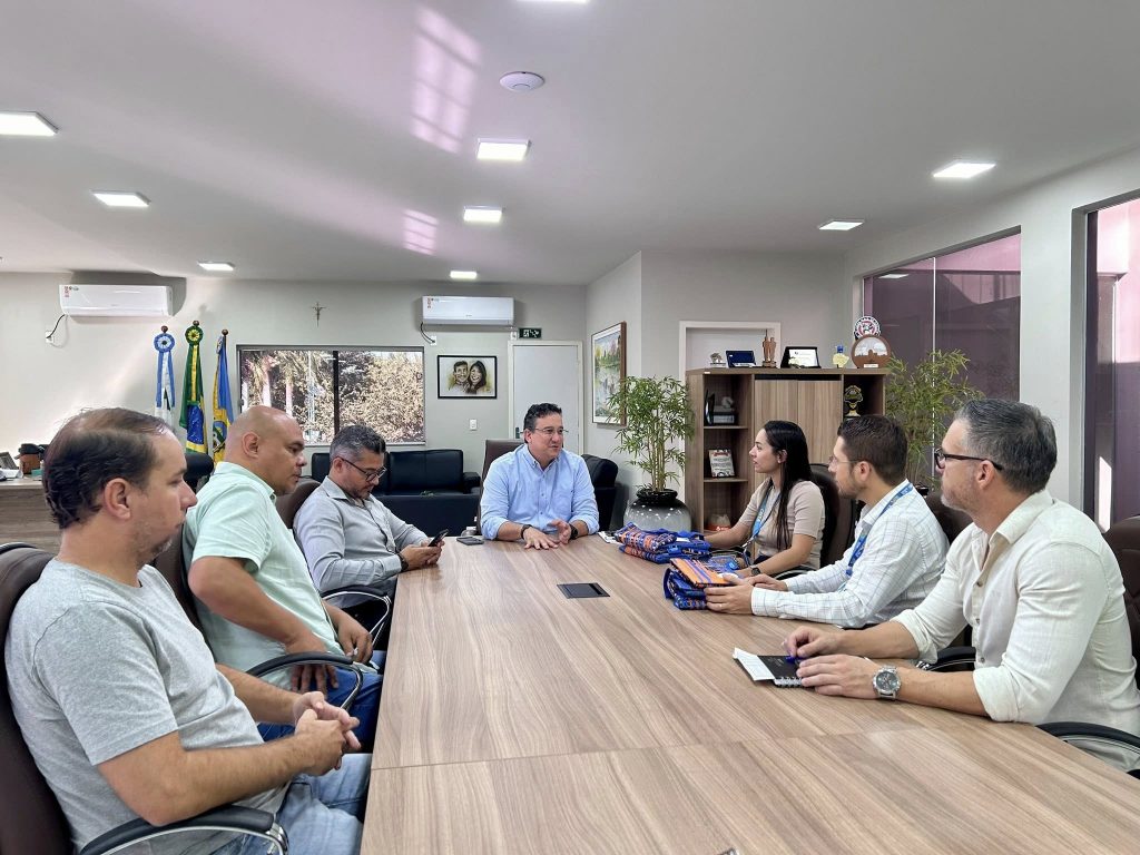 Prefeito José Paleari recebe no gabinete a visita dos gerentes da Caixa Econômica