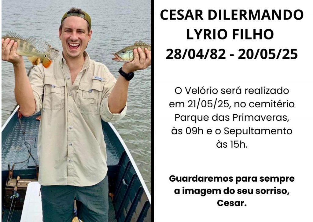 É com profundo pesar que recebemos a triste notícia do falecimento do jovem Cesinha Lyrio, filho do estimado produtor rural Cesar Lyrio. A família Lyrio, pioneira em Nova Alvorada do Sul, é referência de trabalho, dedicação e contribuição para o desenvolvimento da nossa região.