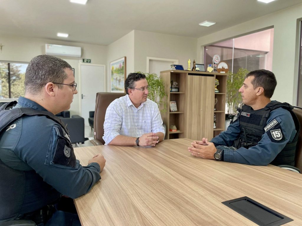Prefeito de Nova Alvorada do Sul, José Paulo Paleari se reúne com Major Nelson Vieira, comandante do 15° BPM de Maracaju, e o Tenente Raphael Penzo, comandante do pelotão da Polícia Militar em Nova Alvorada do Sul.