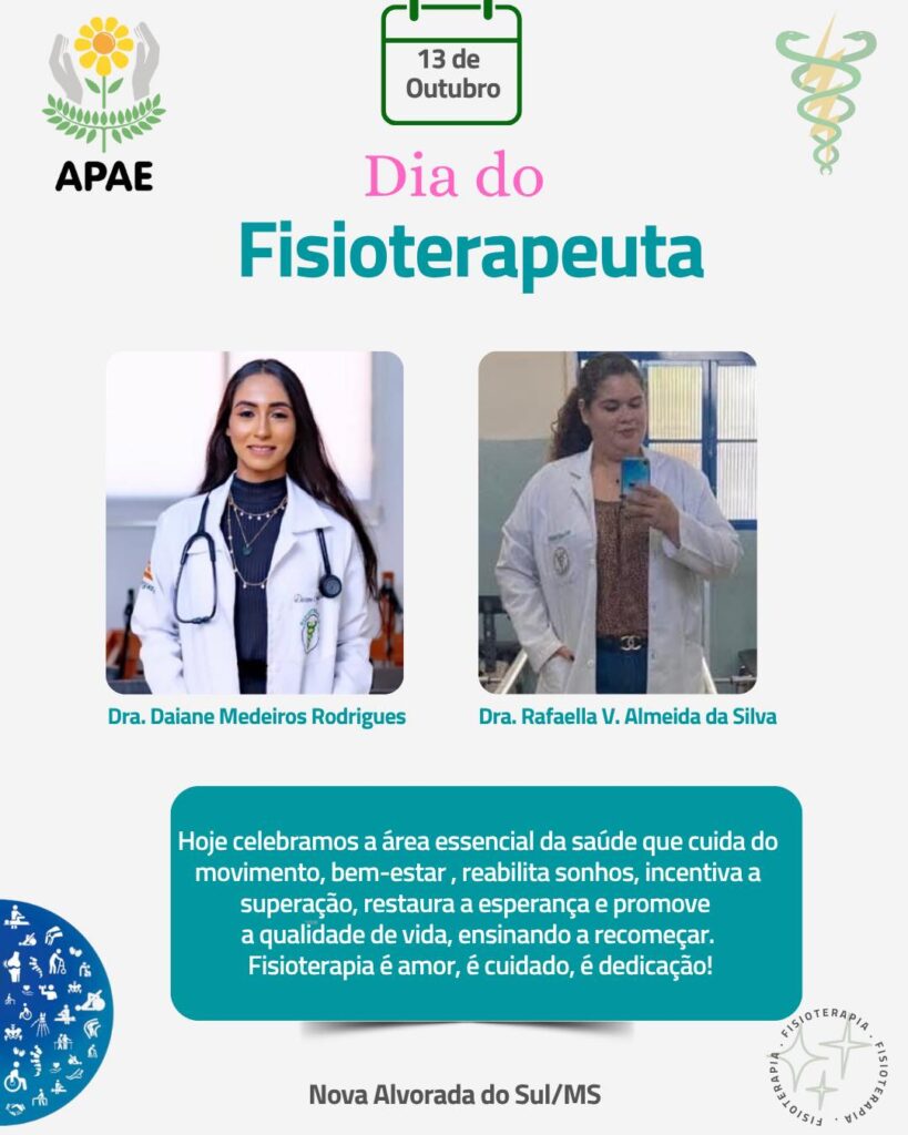Parabéns a todos Fisioterapeutas, em especial as nossas Fisioterapeutas, que exercem um trabalho lindo e fundamental, com empenho e dedicação, proporcionando uma melhor qualidade de vida para os nossos alunos.